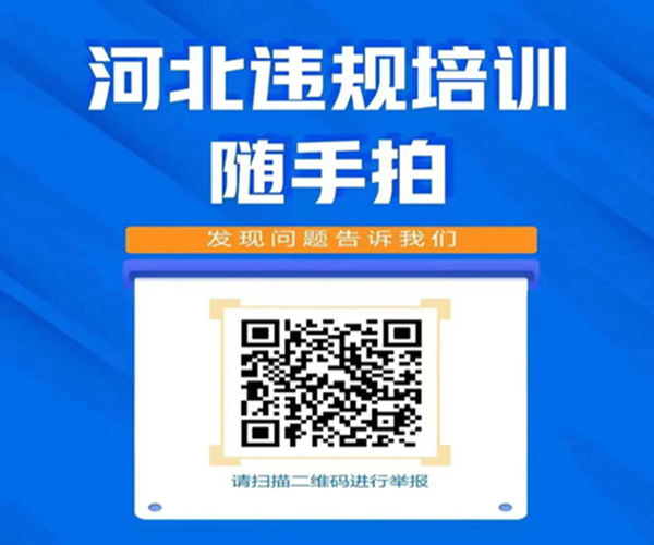 寒假将至,我们也将始终与您站在一起,联合相关部门守护孩子们安全、优质的培训环境。也欢迎您通过“河北违规培训随手拍”、石家庄市校外教育违规培训“随手拍”投诉平台以及市县两级教育部门监督举报电话和邮箱(附后)等方式对市内一切校外违法违规培训行为进行监督举报,共同规范校外培训行为,为孩子们度过一个平安、愉快而有意义的假期保驾护航!