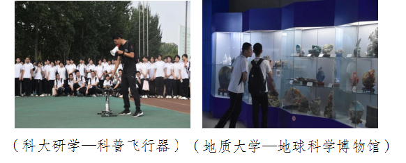 “走出去”:2023年4月高一教师组织学生到北正乡石榴种植基地,实地研究石榴种植的土壤、气温、浇灌以及除虫等问题;5月高二生物组走进益源奶牛养殖场,观察生态养殖的奥妙;7月地理组全体教师到万花山研学万年古化石遗址,了解地壳变化;组织学生暑期外出参观,先后走进河北大学、河北农业大学、河北科技大学、河北地质大学,开展主题为“走进高校逐梦想,不负青春向未来”的高校研学实践活动。